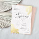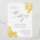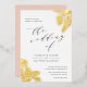 Invités Invitations à votre mariage d'été, de destination ou de plage avec ces invitations de mariage tropical chic avec des feuilles en fronde de palme tropicale en feuille d'or élégante. Vos détails mariages apparaissent dans un mélange de script de calligraphie, de serif et de typographie italique. Cartes inversées à rose vif pour un look tropical chic.