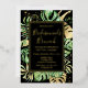 Cette élégante invitation au brunch pour femmes d'honneur tropicales présente des palmiers verts et dorés, des philodendrons et des feuilles de fougères sur un arrière - plan noir. Un cadre élégant en feuille d'or met en évidence le texte en feuille d'or. Les plaques en feuille d'or accentuent ce design botanique exotique et apportent un peu de fantaisie moderne à l'invitation. Cet invitation insulaire d'oasis est parfait pour tous les brunchs de luau, de plage ou de marionnettes à thème tropical.