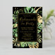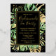 Cette élégante invitation à la fête du thé pour servantes tropicales présente des palmiers verts et dorés, des philodendrons et des feuilles de fougères sur un arrière - plan noir. Un cadre élégant en feuille d'or met en évidence le texte en feuille d'or. Les plaques en feuille d'or accentuent ce design botanique exotique et apportent un peu de fantaisie moderne à l'invitation. Cet invitation insulaire d'oasis est parfait pour toute fête de thé luau, plage ou tropicale.