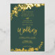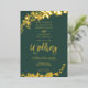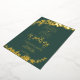 Typographie or chic faire-part de mariage vert floral avec doré peint à la main et feuillage vert. L'arrière - plan de couleur verte est entièrement personnalisable avec de la feuille d'or réelle.