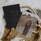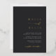Une belle faire-part de mariage minimaliste à base de typographie avec vos noms en lettres d'or frappantes, jointe avec des caractères de script de calligraphie moderne en lettres d'accent. Personnalisez avec les détails de votre mariage en dessous, aligné à droite, et ajoutez un saignement complet à l'arrière d'une photo verticale ou orientée portrait. Notre colorway cendré fait une déclaration classique avec du papier blanc et de l'or sur un arrière - plan doux et noir.