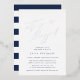 Simple et élégante invitation baby shower caractéristiques "it's a boy" en argent chic feuille de calligraphie moderne lettrage. Personnalisez avec vos détails de baby shower sous. Les invitations à la douche pour bébé sont inversées à de larges rayures bleu marine et blanc. Customisez le type de papier ou la forme pour faire de ce design élégant votre propre.