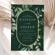 Invitations de mariage élégantes avec vos détails mariages nichés à l'intérieur d'un cadre ovale en feuille d'or entouré d'eucalyptus, fougères et autres riches verdure avec un arrière - plan vert foncé. Les invitations de mariage botaniques modernes s'inversent à un arrière - plan vert solide. Conçu pour coordonner avec notre collection de mariages de verdure Abondante.