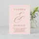 Faire-part de mariage moderne avec un agencement simple et minimal avec vos noms et une élégante esperluette dans un grand format au-dessus de vos détails de l'événement. Tout le texte à l'avant est en feuille réelle sur un arrière - plan rose pâle et peut être modifié dans l'outil d'édition de conception.