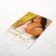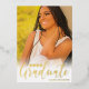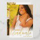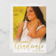 Cette invitation élégante et simple à obtenir un diplôme est parfaite pour un diplômé moderne. Il présente une véritable typographie dorée sur le devant avec un dégradé blanc et une photo de fond de l'invité d'honneur. Au dos se trouvent deux autres photos et toutes les informations de la fête. C'est un design chic, minimaliste, moderne et cool, parfait pour impressionner vos amis et votre famille. ***REMARQUE DE CONCEPTION IMPORTANTE : Pour toute demande de conception personnalisée comme les produits correspondants, les modifications de couleur, les modifications de placement ou toute autre demande de modification, veuillez envoyer un message au concepteur. Vous pouvez même soumettre une demande pour un design entièrement personnalisé et nouveau.