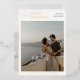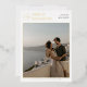 Ajoutez un peu de brillance à vos invitations de mariage avec de l'or véritable, de l'argent ou de l'or rose ! Ce style métallique classique et intemporel ajoutera un autre niveau à vos invitations. Moderne et minimaliste, c'est l'une de nos plus récentes invitations de mariage avec photos. Ce design comprend 2 de vos photos fiançailles préférées en plus de la typographie classique. Les invitations à un mariage photo sont une excellente façon de présenter le couple engagé tout en gardant une esthétique minimale. En haut de la carte, il y a une esperluette écrite en belle calligraphie de script avec les deux noms directement à droite, aligné ensemble à gauche dans le vrai papier. Sur la droite il y a l'invitation à célébrer. Ci-dessous, un simple espace rectangulaire avec de délicates lignes de papier peint pressé encadre la photo de votre choix. En bas, la date est écrite dans des chapiteaux serif à feuille claire. Nous avons choisi de n'afficher que les informations de base sur l'avant de la carte, afin qu'elle puisse être utilisée comme une sauvegarde de la date ou un rappel élégant - parfait pour être épinglé sur une planche ou collé au réfrigérateur! Le dos de la carte contient toutes les informations de cérémonie dans une combinaison d'élégante typographie serif et de lettres de script modernes. Derrière le texte se trouve une deuxième photo, recouverte d'une superposition blanche semi-transparente pour que le texte se démarque clairement contre l'arrière - plan. Toutes les polices, couleurs, images et placements sont entièrement personnalisables selon vos besoins. Si vous souhaitez modifier des polices, des emplacements, des feuilles ou des couleurs, faites simplement défiler l'onglet "Cliquez pour customiser plus loin" et utilisez l'outil de conception Zazzle. Vous pouvez facilement choisir entre l'or, l'argent et l'or rose feuille de l'outil ci-dessus. Pour une personnalisation plus avancée, faites défiler la page "Cliquez pour customiser plus loin" et utilisez l'outil de design intuitif de Zazzle pour modifier instantanément ! N'hésitez pas à me contacter pour toute question ou demande personnalisée - Je serai heureux de vous aider !