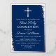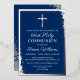 Véritable Parties scintillant Argent Marine Blue First Communion Foil Invitation