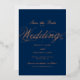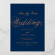 Invitation En Aluminium Véritable Rose Gold Foil Mariage Bleu Enregistrer