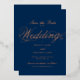Un beau mariage en feuille d'or rose, sauvegardez la carte de date avec typographie de script traditionnel. Un magnifique mariage bleu marine et or rose sauvez le design de la carte de date avec une typographie minimaliste classe. La typographie de script traditionnel crée un mariage élégant en or rose intemporel, sauf la conception de la date.