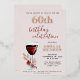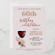 Rustic Red Wine Glass Rose Botanique 60e Anniversaire Foil Invitation. Verre de vin rustique aquarelle aux roses rouges et brindilles sur un arrière - plan rose vif. L'âge et le nom sont de la feuille d'or - vous pouvez la changer en feuille d'argent ou en feuille d'or. Parfait pour une femme qui fête son soixantième anniversaire.