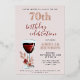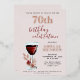 Rustic Red Wine Glass Rose Botanique 70e Anniversaire Foil Invitation. Verre de vin rustique aquarelle aux roses rouges et brindilles sur arrière - plan rose vif. L'âge et le nom sont de la feuille d'or - vous pouvez la changer en feuille d'argent ou en feuille d'or. Parfait pour une femme qui fête son soixante-dixième anniversaire.