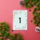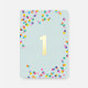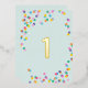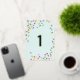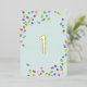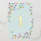 Notre invitation de fête pour le premier anniversaire 'Confettis' présente des pois colorés et amusants sur un fond vert menthe avec le numéro un en feuille d'or. Tellement mignon ! Pour voir plus d'articles assortis, consultez notre collection 'Confettis'.