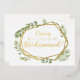 Demandez à vos amies les plus proches de se tenir à vos côtés avec cette invitation luxueuse sur carte postale « Will You Be My Bridesmaid ? », avec accents en véritable feuille d'or et une belle conception de feuilles de verdure. Parfaite pour un mariage moderne, élégant ou inspiré de la nature, cette invitation est un moyen étonnant de poser la question à votre cortège de mariée.