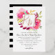 Aquarelle vive et vive magenta rose faire-part de mariage floral avec un élégant monogramme de feuille. Gras rayures noir et blanc sur le dos de la carte pour un contraste moderne, ou supprimer si non préféré.