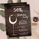 Vin d'or rustique Verre Bois 50e anniversaire Invitation à huile. Invitation d'anniversaire avec verre de vin classique en feuille d'or sur un arrière - plan en bois rustique foncé. Parfait pour un homme ou une femme qui fête le cinquantième anniversaire.