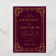 Invitations de mariage art déco moderne avec détails mariages encadrés par un cadre art déco en feuille d'or avec un arrière - plan de couleur vin. Conçu pour se coordonner avec notre collection de mariages Art Déco Moderne.