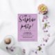 Voici une nouvelle invitation à la fête d'anniversaire adulte moderne et élégante, avec un arrière - plan violet pastel avec un texte de typographie manuscrite en or qui dit "shh ! c'est une fête surprise". Customisez cette carte de modèle en ajoutant vos propres informations de fête.