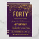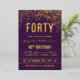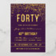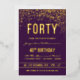 Invitation En Aluminium Violet | Gold Confetti 40e fête d'anniversaire