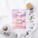Invitation commémorative du déjeuner imprimée contre une photo d'un ciel de l'aube dans de belles teintes douces de violet et rose acajou. Ajoutez le nom et les années de vie de votre être aimé, et le texte de l'invitation en papier argenté.