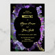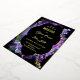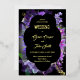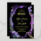 La carte de mariage présente un superbe design floral violet, magnifiquement complété par une bordure en forme ovale noire qui ajoute une touche élégante. A l'arrière, un joli papillon ajoute un élément fantaisiste, symbolisant la joie et la transformation de l'amour alors que le couple entreprend son nouveau voyage ensemble.