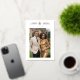 Each card features an exquisite design with an ornate golden metallic tulip frame surrounding a personalized photo of the couple. The contrast with the white background adds a touch of luxury and opulence, creating a majestic and unique appearance. This design blends classic elegance with a contemporary touch, perfect for a dream wedding.