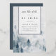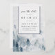 Elégant mariage d'hiver enregistrer les cartes de datation comprennent du lettrage noir classique sur une aquarelle arrière - plan d'une montagne enneigée parsemée de pins dans des bleus et gris doux. Choix chic pour les mariages d'hiver en forêt ou en montagne, ces élégants plats à sauvegarder les cartes de date sont faciles à customiser avec vos noms, date mariage, emplacement mariage, site Web ou une indication qu'une invitation formelle suivra. La garniture en papier argenté complète la recherche d'une touche luxueuse.