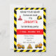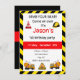 En construction Concrete mixer Anniversaire invitation personnalisée, ce design unique a un mélangeur de béton unique, sous bande de construction et un casque de construction. Le ruban de construction est enveloppé autour des bordures sur le devant sur le dos une couleur noire solide avec le texte que vous êtes invité. Cette conception peut être personnalisée avec du texte et du nom. Éléments correspondants disponibles dans la collection de magasins