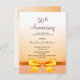 Une carte d'invitation dorée pour un 50e anniversaire de mariage d'or. Glamour avec un faux or élégant et traditionnel et un dégradé blanc, fond ombré avec une étincelle de couleur rose or et un nœud doré en décoration. Modèle pour les noms et les détails de la fête. Le texte : 50e anniversaire et les noms sont écrits avec un style de lettrage manuscrit moderne.