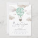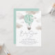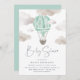 Célébrez votre bébé sucré sur le chemin avec cette invitation baby shower chic et simple neutre genre dans l'aqua doux et l'aquarelle de menthe. Le design comprend une illustration de montgolfière flottant au milieu de nuages moelleux, avec les détails de votre événement en dessous en lettres gris bleu fumé.