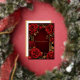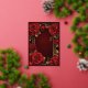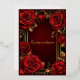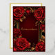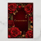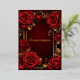 Invitation Quinceañera en papier métallisé or avec de belles roses rouges ornant un cadre doré orné.