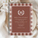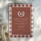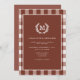 Apportez un charme éclatant à votre grand jour avec ce faire-part de mariage en vichy classique, qui fait partie de l'Elegant Rustic En vichy Collection. Doté d'un arrière - plan motif audacieux en vichy dans votre choix de six couleurs joyeuses, d'une crête monographique et d'une élégante typographie serif, ce design allie charme rustique et style intemporel. Parfait pour les mariages de campagne, de grange ou de jardin, cette invitation donne le ton d'une fête joyeuse et détendue. Disponible sous forme de version professionnelle imprimée ou de téléchargement instantané pour une impression do-it-yourself facile. Associez-le à nos assiettes en vichy assorties, serviettes, étiquettes, panneaux d'accueil, et plus pour une suite mariage cohésive et colorée.