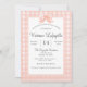 en vichy d'aquarelle de pêche mignonne avec design d'arc. Customisez cette invitation baby shower avec vos propres nom, adresse, date et registre.