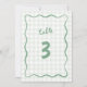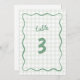 Fêtez les noces à venir de votre future mariée préférée en style avec nos numéros de table bizarres et fantaisistes! Ce design est composé d'un cadre ondulé, accompagné d'une police décontractée manuscrite. La carte de numéro de table est téléchargeable et vient dans un jeu de couleurs neutres de vert sauge sur un arrière - plan à motif en vichy vert doux.