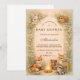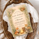 A heart-melting woodland design featuring a sweet gathering of forest friends beneath a soft storybook canopy. Fox, fawn, bear, raccoon, and bunny sit together in a warm autumn meadow framed by gentle trees and vintage parchment tones. The earthy palette and delicate botanical details create a cozy, nostalgic feel—perfect for a nature-inspired celebration. Fully customizable to make it uniquely yours.
