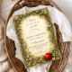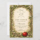 This charming baby shower design features an illustrated woodland storybook frame with twisting branches, delicate blossoms, soft greenery, and a whimsical red apple accent set against a warm parchment background. The vintage-inspired artwork and gentle earthy tones create a cozy, magical aesthetic that feels timeless and inviting, perfect for a storybook-themed celebration with a natural, fairytale-like charm.