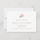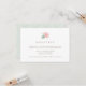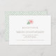 Conçu pour aller avec notre collection de faire-part Island Hibiscus, cette carte d'enclos de réception de mariage chic et insulaire a une ambiance tropicale vintage, avec une petite illustration de fleur d'hibiscus corail et verte et les détails de votre réception de mariage en taupe douce. Les cartes se retournent sur un motif de treillis en bambou blanc sur fond vert pastel.