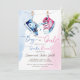 Bébé basket garçon ou fille rose bleu sexe révéler garçon ou fille invitation éditable modèle instantané téléchargement numérique, Simple rose et bleu, script gris.