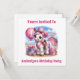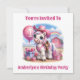 Un adorable poney de cowgirl fête son premier anniversaire avec un ballon rose avec le numéro 1 et un casquette de cowgirl rose sur une ferme. Personnalisez l'invitation avec le nom de votre enfant.