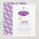 Une petite fille qui dort douche l'invitation parapluie purole, avec une petite fille qui dort sur un nuage, une lune croissant et une étoile dessus et un parapluie violet avec gouttes d'eau. Le dos comprend un motif bébé. Quelques éléments de Trina Clark et avec l'aimable autorisation de vectorportal.com.