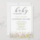Bébé Fleur sauvage de printemps dans Bloom Baby shower Invitation. Ce joli bébé en baby shower de fleurs invite le fleur sauvage comme bordure inférieure avec de jolies polices de script et serif entourées de deux bordures de ligne verte décalées.