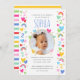 Célébrez la magie d'en faire deux avec ces invitations de fête mignonnes et colorées ! Un design amusant personnalisé avec la photo de votre enfant et de nombreux arcs-en-ciel, coeurs et étoiles. Tout le texte peut être customisé, de sorte que vous pouvez inclure les informations que vous voulez. L'âge d'anniversaire le plus important est répété dans tout le motif et aussi sur le dos, avec de grandes bandes arc-en-ciel. Cette carte personnalisée est parfaite pour les 1er, 2ème, 3ème, 4ème ou 5ème anniversaires jalons des enfants et se présente dans une palette de couleurs vives et pastel de rose, rouge, jaune, vert, bleu et blanc. ● Merci à Yan-Krukau pour la photo de placement.