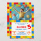 Lancez l'amusement avec cette Invitation anniversaire de l'édifice pour enfants! Présentant une frontière de blocs vibrante, des ballons gais et un enfant ravi sautant avec joie, ce design est idéal pour une fête créative et aventureuse. Parfait pour une fête à thème autour de la construction de blocs, il est entièrement personnalisable pour rendre votre journée spéciale inoubliable!