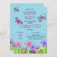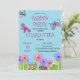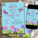 Jolie invitation à la fête d'anniversaire de jardin - facile à customiser pour répondre à votre thème, comme pique-nique et sentier de nature. Design de jardin d'été coloré avec typographie lunaire, fleurs, insectes et insectes, y compris l'escargot, coccinelle, abeille et papillons.