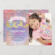 Sous les invitations d'anniversaire de la mer avec une photo de votre enfant, une toile de fond colorée de motif de sirène pastel, parties scintillant dorée et rose brillant, algues, deux queues de sirène de parties scintillant dorée, et un modèle de fête anniversaire de enfant moderne facile à personnaliser.