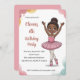 Faites de son anniversaire spécial avec ces adorables invitations d'anniversaire de ballerine pour les filles! Dotée d'une jolie ballerine de dessin animé dans un tutu rose, cette invitation est parfaite pour une fête d'anniversaire de ballet, une fête à thème de danse ou le 6ème anniversaire de la petite fille. Des couleurs pastel douces et un script élégant ajoutent une touche brillante et girly. Customisez facilement avec le nom, l'âge, la date du parti, l'adresse et les détails du RSVP de votre enfant. Parfait pour les fêtes d'anniversaire de petite fille, les anniversaires sur le thème du ballet ou les invitations à des fêtes roses !