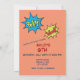 Invitation d'anniversaire personnalisée pour enfant super-héros volant coloré.