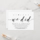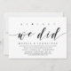 Carte d'invitation de mariage en fuite sur le thème du script moderne (Enfin, nous l'avons fait). C'est parfait pour votre célébration décontractée au bord du lac.
