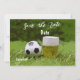 Enregistrer la date du football avec de la bière sur l'herbe verte Carte d'invitation pour joueur et fan de football. Avec un design impressionnant et un sentiment simple, cette carte est un moyen mémorable de souhaiter à l'un de vos proches un moment heureux.