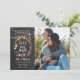 Cette photo boho enregistrer la carte de date comprend votre photo spéciale et des lumières à cordes sur un joli pot en maçon qui entoure votre enregistrer le message de date au-dessus de vos noms, date et lieu sur un arrière - plan de tableau noir. Conçu par Thisisnotme©