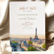Voici le mariage "Paris" Save the Date, magnifiquement peint en aquarelles ! Cette invitation étonnante présente une ligne d'horizon parisienne typique, avec la Tour Eiffel emblématique, les charmantes rues pavées et les Champs Elysées. Notre invitation est personnalisable, de sorte que vous pouvez facilement modifier le texte pour s'adapter à vos détails mariages. Choisissez parmi une variété de styles et de couleurs de police pour correspondre à votre thème. L'impression de haute qualité assure que vos invitations seront belles et dernières pour les années à venir. Invitation vos invités à se joindre à vous pour célébrer votre amour dans la ville romantique et belle de Paris avec cette invitation étonnante et unique. Commandez maintenant et préparez-vous pour le mariage de destination de vos rêves!